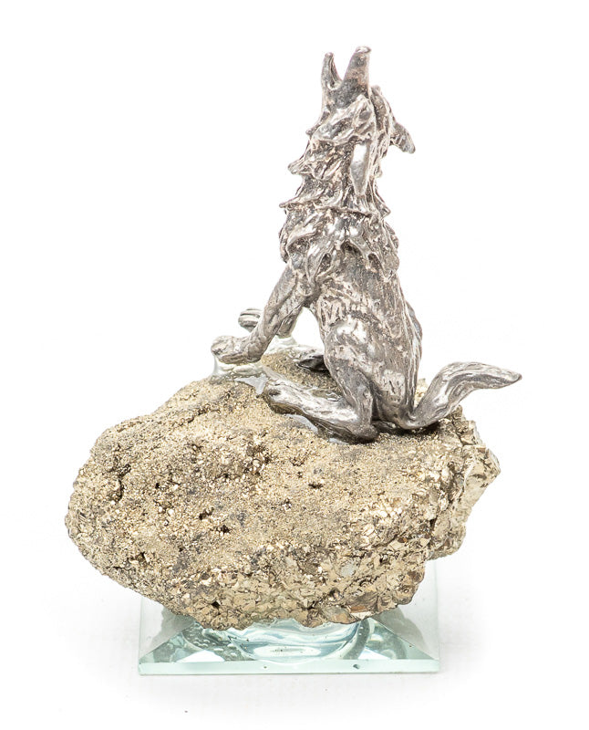 The Pewter Howling Wolf is mounted on a large piece of Pyrite. The clear stand is attached the bottom of the Pyrite. Makes a lovely addition to any collection. Free Shipping USA