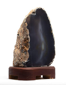 Cut and polished from Brazilian agate. They come on a non-endangered Brazilian wood base. The light bulb and cord are included. The stones are approximately 6 .5" High by 4" Wide. The light is inside the stone. 115 volts. Sample of one with light on.