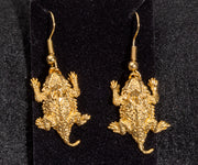 Add a touch of desert charm to your style with these stunning gold-plated horned lizard earrings. Featuring a detailed horned lizard design, these earrings dangle gracefully from a secure hook, offering both elegance and a unique, nature-inspired look. Perfect for any jewelry collection or as a thoughtful gift for lovers of wildlife and southwestern charm. The horned lizard is 1 inch + hook.