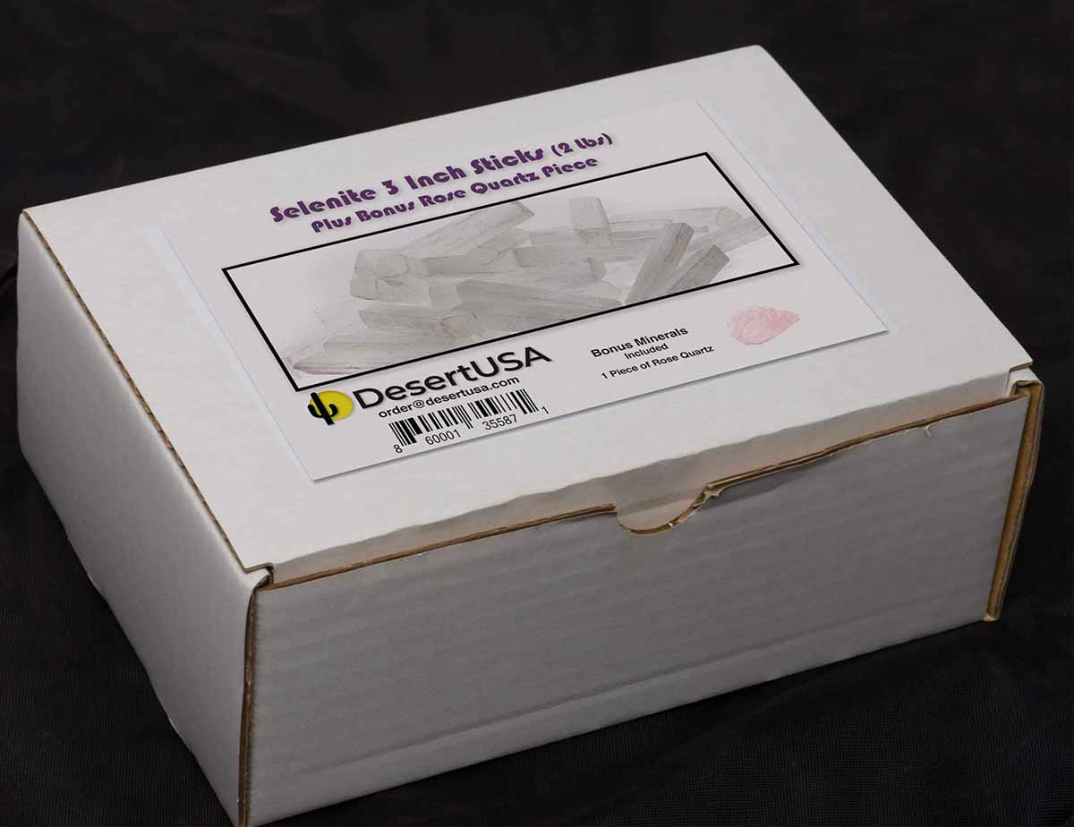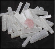 2 Pounds of 3 Inch Selenite Sticks, Plus Bonus Rose Quartz Piece. Selenite is a type of gypsum rating a "2" on the Mohs scale, making it very soft. Used for crystal healing, it is also reputed to provide clarity and protection from negative energies. Selenite can be used to clear and charge other stones as well.