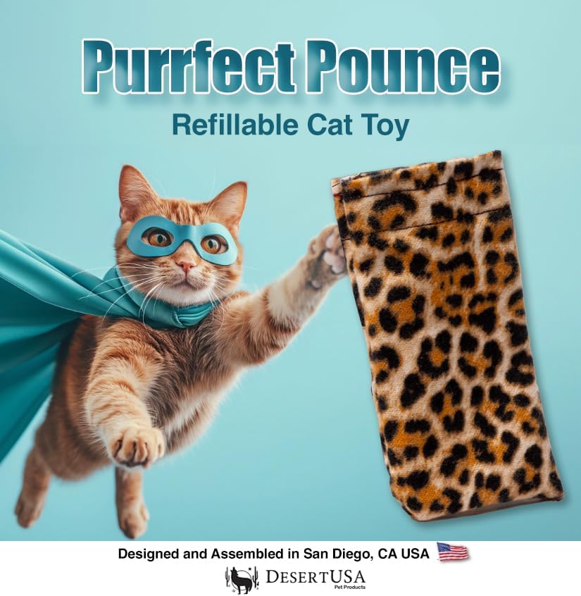 Purrfect Pounce Refillable Cat Toy with Catnip Included - Handmade in The USA, Interactive Leopard Design - Easy Refill Opening