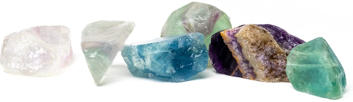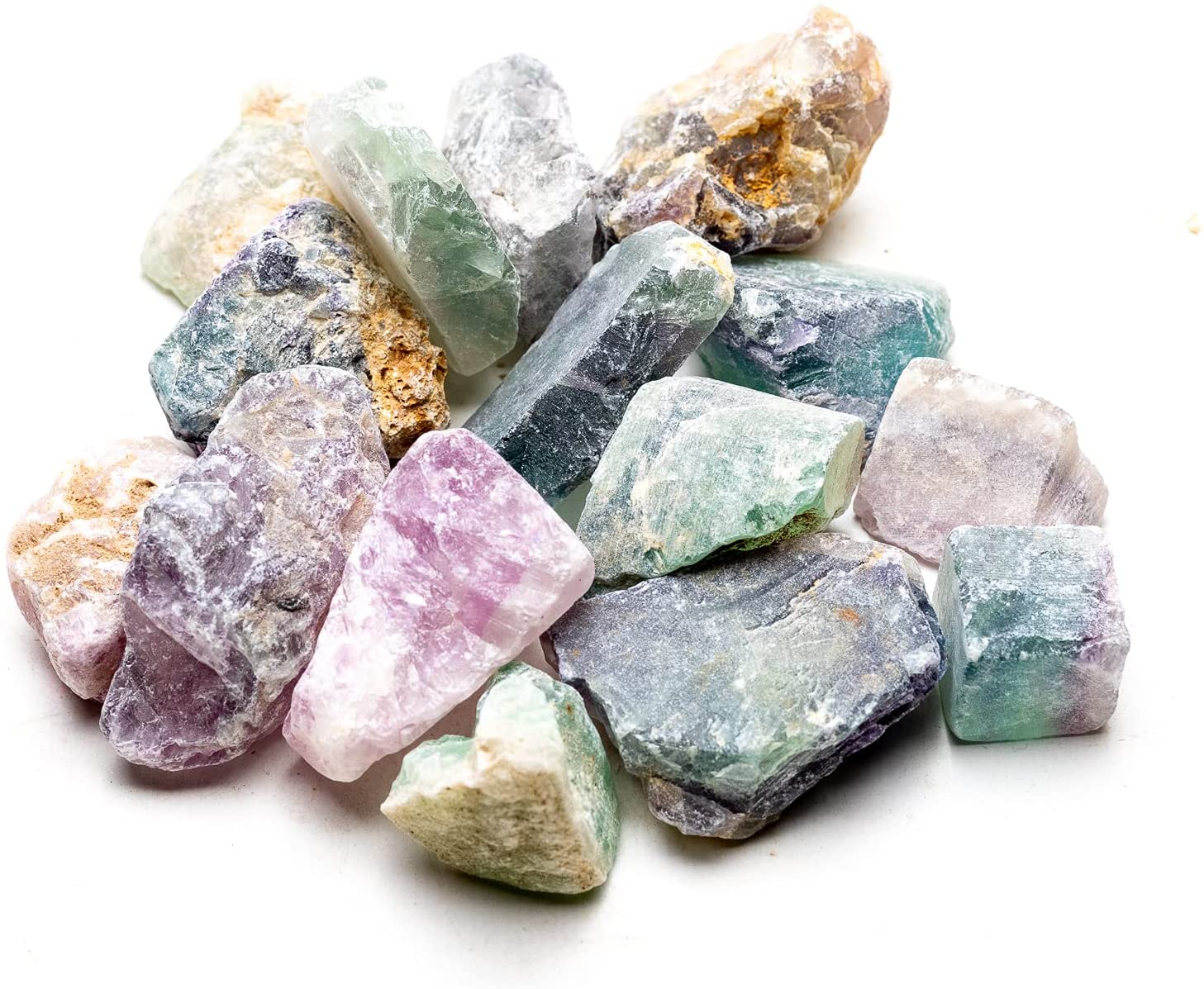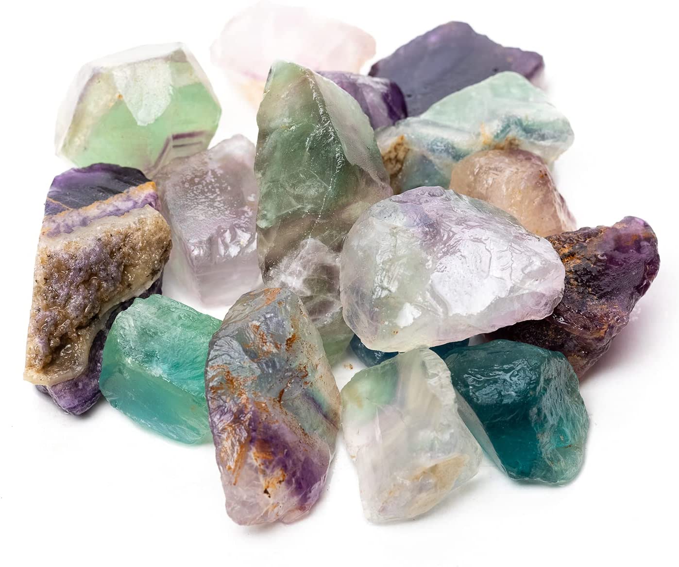 - Quantity: 1 lb (Fluorite) Size: Ranges from 20–40g Each raw Fluorite stone will vary in color and shape.