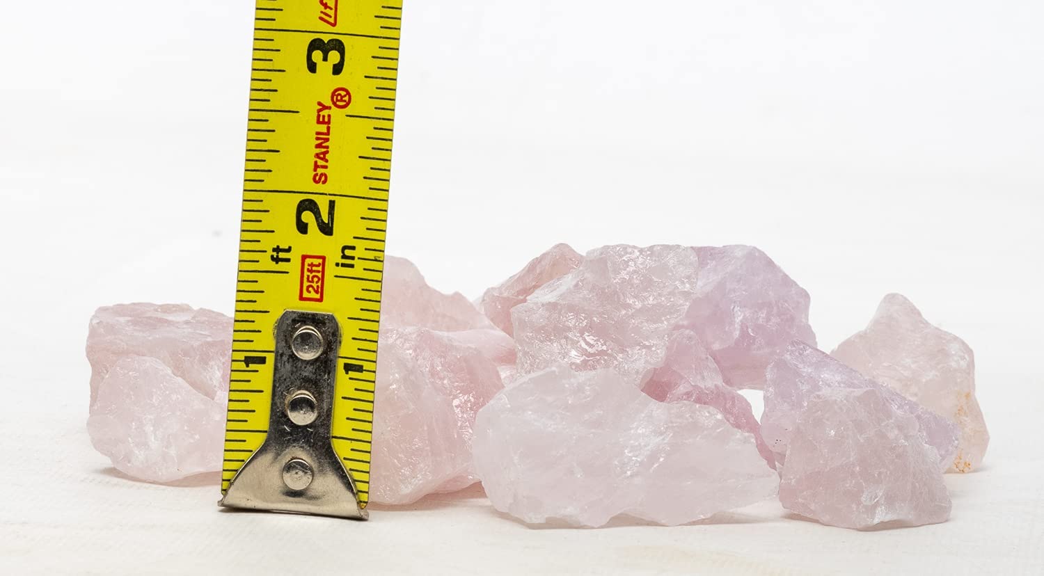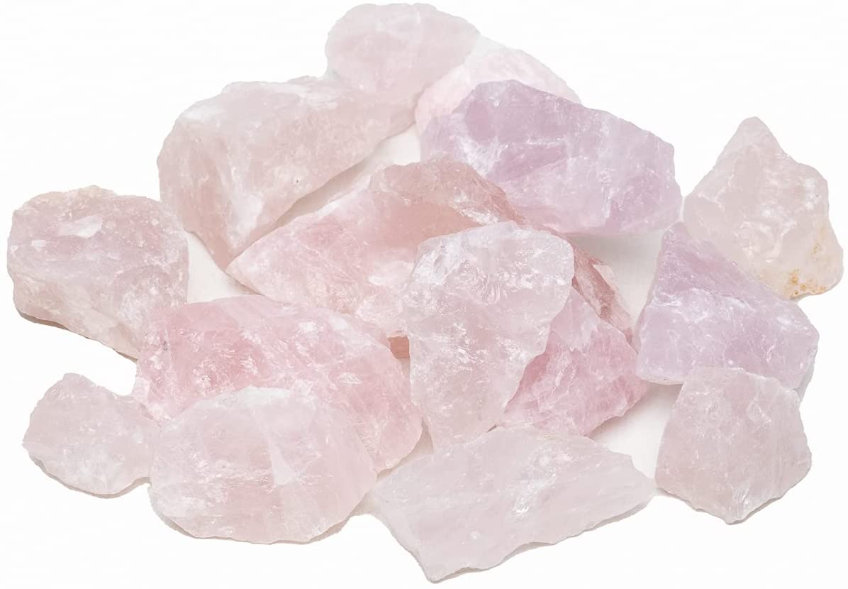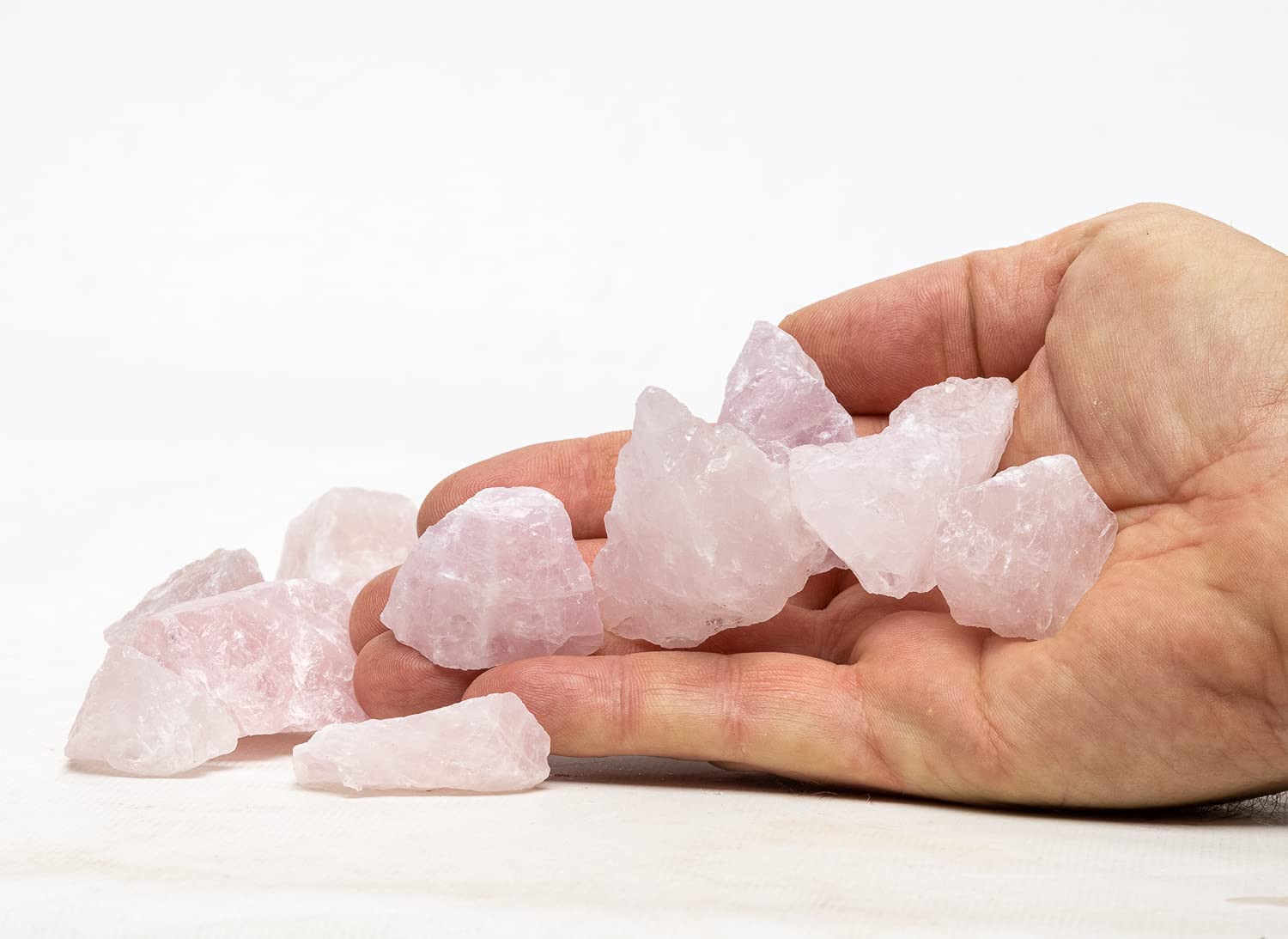 • Quantity: 1 lb (Rose Quartz) Size: Ranges from 20 –40g Each raw rose quartz stone will vary in color and shape.