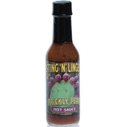 Introducing Sting N' Linger brand Prickly Pear Hot Sauce. This all natural and gluten free sauce is made from the freshest ingredients like diced tomatoes, fresh onions, peppers and cilantro. There are no preservatives added whatsoever. Suggested Uses: Crank up the heat on tacos, nachos, burritos, chicken, steak, quesadillas and more! Ingredients: Diced tomatoes, fresh onions, fresh chilies, lemon juice, red wine vinegar, all natural prickly pear nectar, lime juice,light brown sugar, fresh garlic, fresh cilantro, spices, granulated garlic. Gluten free! Bottle size: 5 oz sealed glass woozy bottle